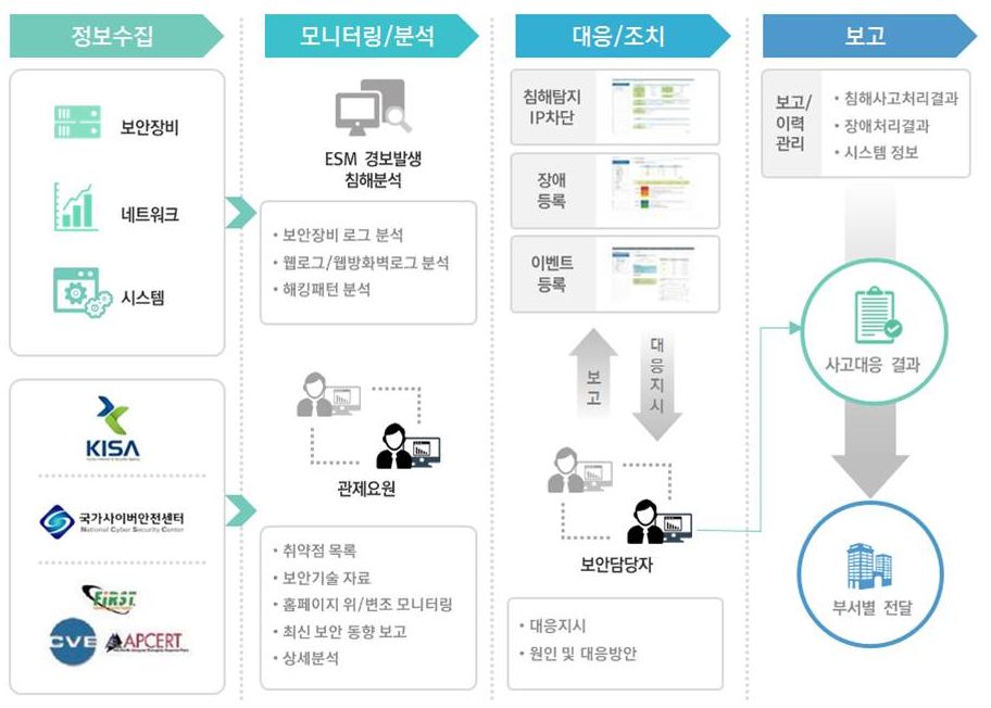 예방 -> 정보수집 -> 모니터링 -> 대응조치 -> 보고