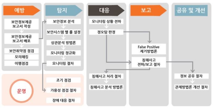 예방 -> 탐지 -> 대응 -> 보고 -> 공유 및 개선