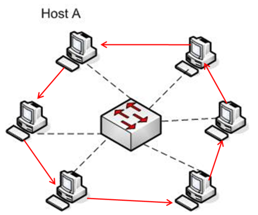 - 송신 컴퓨터가 전송한 신호는 허브를 통해 네트워크의 모든 컴퓨터로 보내짐