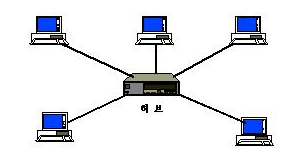 즉, 중앙에 위치한 주 노드(허브라는 중앙장치)에 연결된 케이블로 다른 노드(컴퓨터)들을 연결